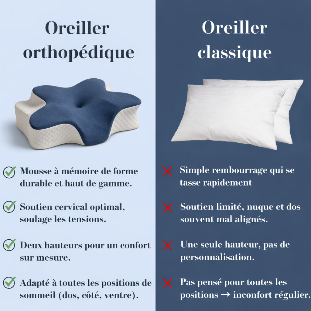 Nos produits sont développés en collaboration avec des spécialistes du confort et de la posture, pour prévenir les douleurs cervicales et améliorer la qualité de votre sommeil.