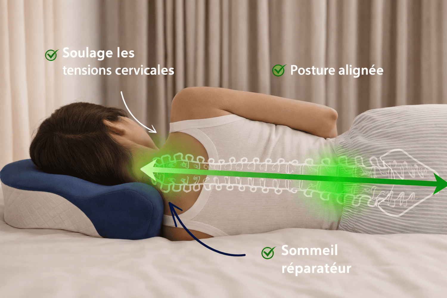 Nos produits sont développés en collaboration avec des spécialistes du confort et de la posture, pour prévenir les douleurs cervicales et améliorer la qualité de votre sommeil.